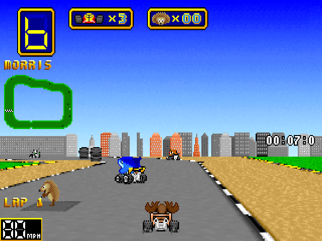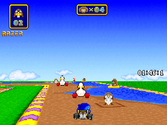 Don your racing helmet and gear up for speed, only to find that your racing partners are all animals! No tame animals these are, mind you. The shark has a mean bite and the elephant will give you a hefty bump. The game also allows two player mode and you can play a league of tracks to see who finishes with the most wins. Wacky Wheels is the perfect way to let off some steam!