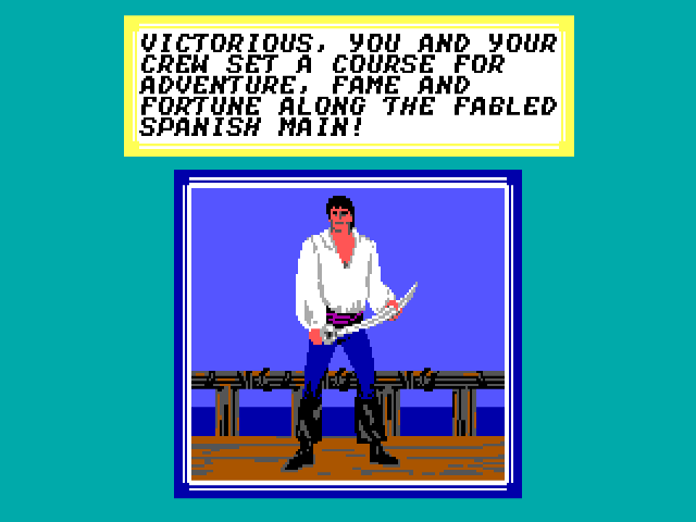 In Pirates! you become a 17th-century privateer captain searching the Caribbean for new ships and cities to plunder. Using your sills as a sailor, swordsman, merchant and captain, you must navigate reef-strewn waters to seize the fabled treasures of the Spanish Empire. From the excitement of attacking Spanish galleons to the romance and intrigue of foreign ports, Pirates! lets you relive the era of the buccaneer. This is not just a game of sea battles, but a unique program combining the realism of simulation, the fun of the arcade and the interaction of adventure and role-playing games. In the tradition of all MicroProse software, Pirates! offers hundreds of hours of stimulating game play, using multiple scenarios to ensure a continuing challenge. Varied difficulty levels provide fun for beginners and experienced players. Pirates! is another creation by Sid Meier, designer of the best-selling simulations, F-15 Strike Eagle and Silent Service. He has reproduced the ships, waters, prevailing winds and ports of the Caribbean to provide a realistic look at the pirate era. So grab your cutlass before you embark on this exciting voyage through history.