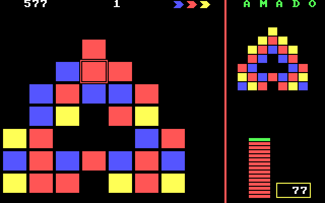 Amado is a creative mind teasing game. It is not only challenging and stimulating, it exercises the brain as well. Each box of the pattern is red, blue, or yellow. You will be able to move the box cursor to the adjacent box either vertically or horizontally using arrow keys.