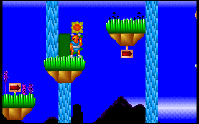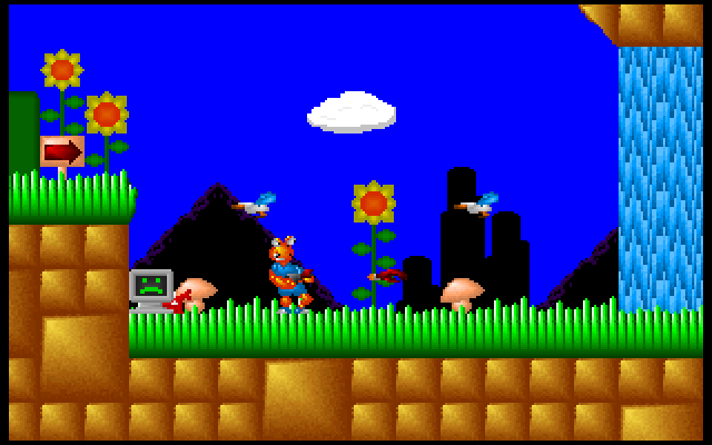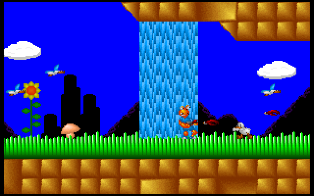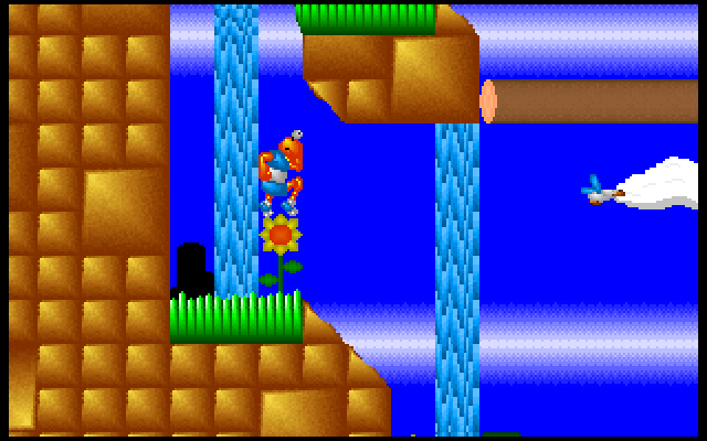 Peach the Lobster is a sample game that was included with the demo of Recreational Software Designs' Game-Maker. It showcases and describes various features of the development tool, but also contains a complete playable game featuring an anthropomorphic lobster named Peach fighting various hostile creatures (mostly ducks). Peach can run and jump, and throw an unlimited supply of lobster claws at enemies. Touching or bumping into any hostile creature will slowly damage Peach, but there is no visible health meter so it's hard to tell how much hit points you have at any time. There are 14 levels split into several themes.