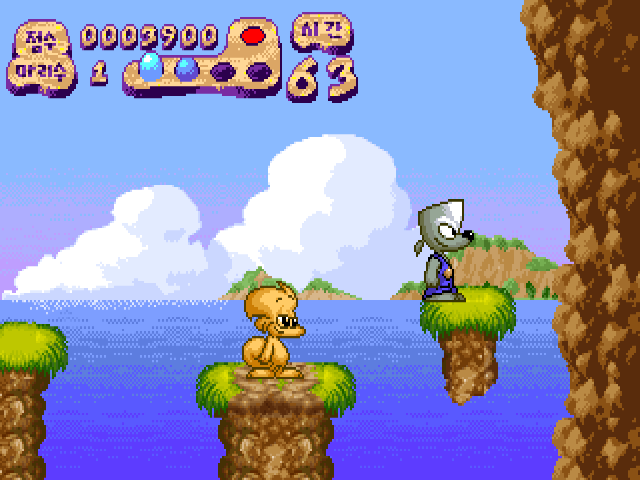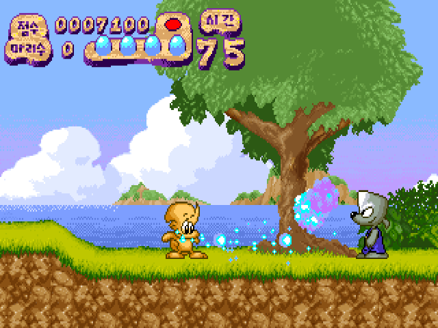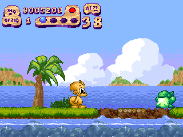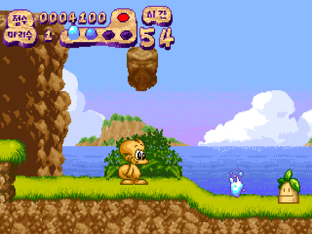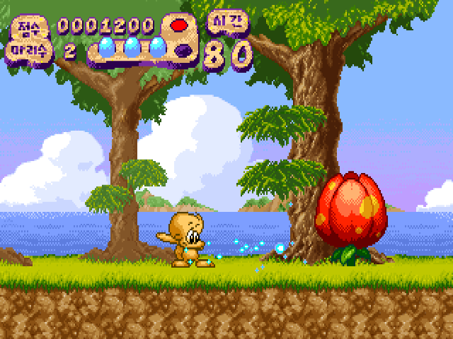 Eol! is a side-scrolling platform game with cheery, colourful cartoonish art and an easy learning curve. You control Eol, the cute yellow little creature (possibly a chicken), on a quest to rid the land of an evil wizard and his cronies. The game is made in the traditional Family Production art style reminiscent of children's animated series, with a great detail to character design and animation. Eol! has fluid controls and does not have annoying elements like hard-to-perform timed jumps or swarms of enemies and projectiles that have you mashing at the keyboard in helpless frustration. The trademark Family Production characters, Py & Gity, make a cameo appearance as you start the demo, and another upon exit.