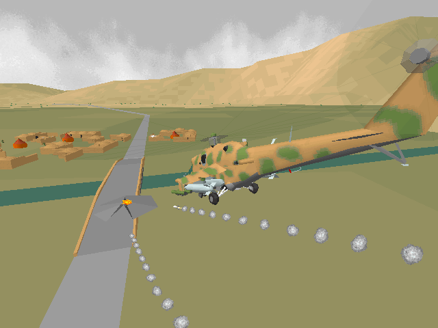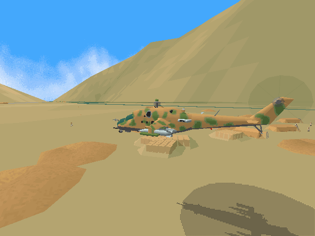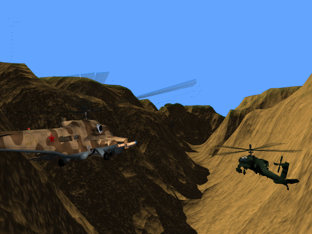 Strap yourself into the cockpit of the Hind, comrade! You've felt the exhilharation of flying the Apache. Now you can double the adrenaline rush by taking the controls of the Russian Mi-24 Hind, a chopper so big, bad, and armed to the teeth, it's frightening! Couple lightning-fast action and powerful 3D visual effects with new low-altitude terrain technology and advanced artificial intelligence based on actual Russian army activity, and you've got a helicopter simulation worthy of following the critically acclaimed Apache. There's even a multiplayer feature, so up to eight players in two teams can compete via network or modem, allowing for the ultimate mission: head-to-head combat with the Apache! Get a taste of what it's like to fly against the very best Uncle Sam has to offer. Strap yourself into the Hind, comrade. And try to stay alive ...