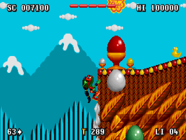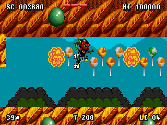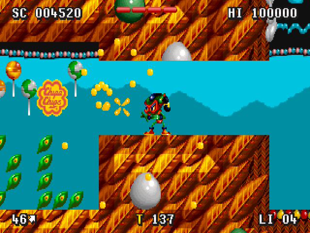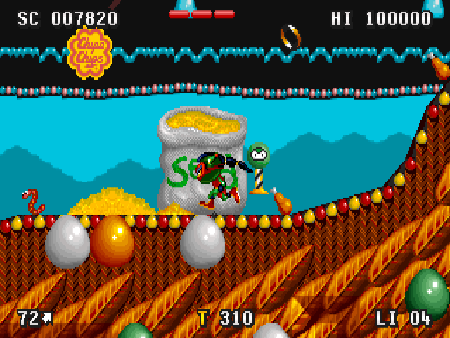 The sequel to Zool features more of the same fast platforming gameplay across multiple colourful levels. This time you can play as Zool himself or his female friend, Zooz, or two players can take control of both characters (but not simultaneously).