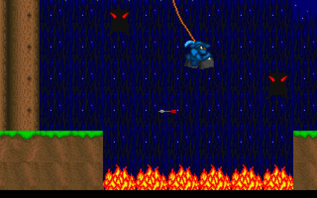 Rampart Rampage is a side-scrolling game loosely based on Ocean Software's1983 arcade game Hunchback. You control a character with a feather hat (in earlier releases, a hunchback) that moves across the screen, dodging and jumping over various obstacles in order to get into a castle. As much as touching anything, be it a flaming cannonball or a bird, immediately costs the player a life and resets the level. This game requires a lot of dexterity and timing, and can only be completed if you memorise all the obstacles in every level. As such it captures the spirit of 80s video games rather well, but is pretty annoying and unrewarding to play.