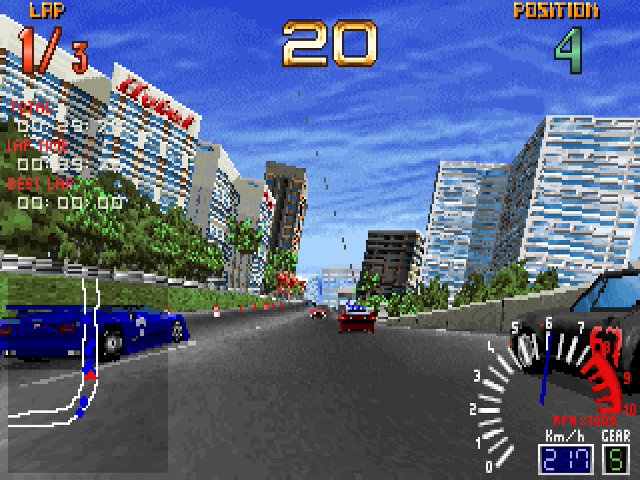 Experience the over-the-legal-limit thrill of high-end arcade auto racing. The mechanics are simple: put your foot on the gas and go. Do whatever it takes to get your speed demon across the finish line first in this ballsy 3-D animated real-time environment. Jump into one of six maximum horsepower racing machines and just try to make it through the toughest tracks our demented designers could think up. Jam past torqued-out competitors then floor it through even more unpredictable terrains--all whizzing by to a pumped-up heavy metal soundtrack.Lose your concentration for even one nano-second and you're trading paint with the concrete barriers. Multiple viewpoints (cockpit, chase mode, front and rear view) and six tracks from which to choose keep the action fresh and barely under control. Rev the competition into overdrive when you go battle it out head-to-head against your so-called-friends using network play for the ultimate road race available.