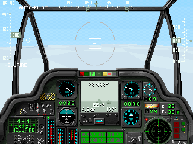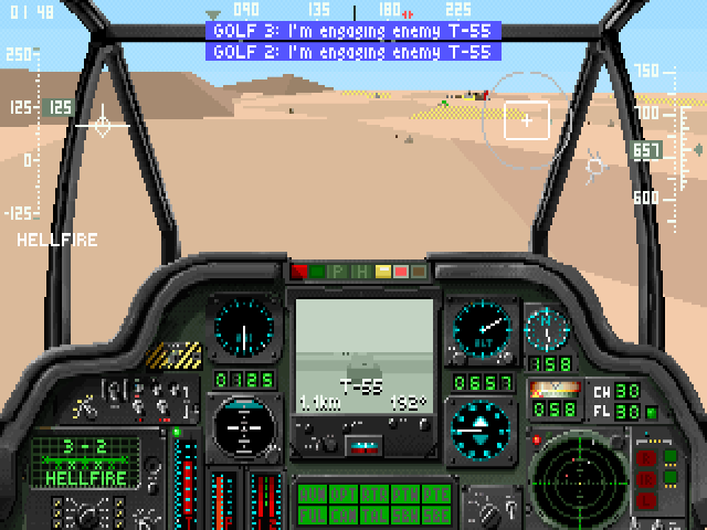 Four different "films", two in Europe and two in the desert, have been included for viewing. An interesting feature of this demo is the ability to switch a mission film to interactive mode and actually take over the flight of the helicopter.