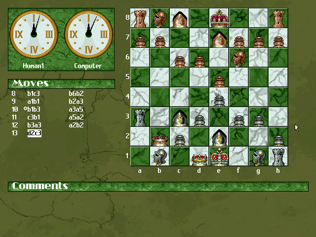 The Complete Chess System II is an in-depth chess programme that can be played against computer or human opponents, and also includes various analysis tools and a database of played chess games. There are several view modes, including the traditional 2D and 3D, and other customizing options available. The interactive demo allows to play the first 15 moves.