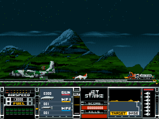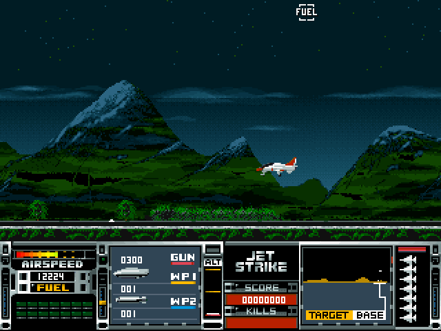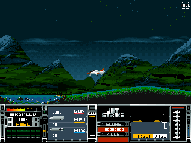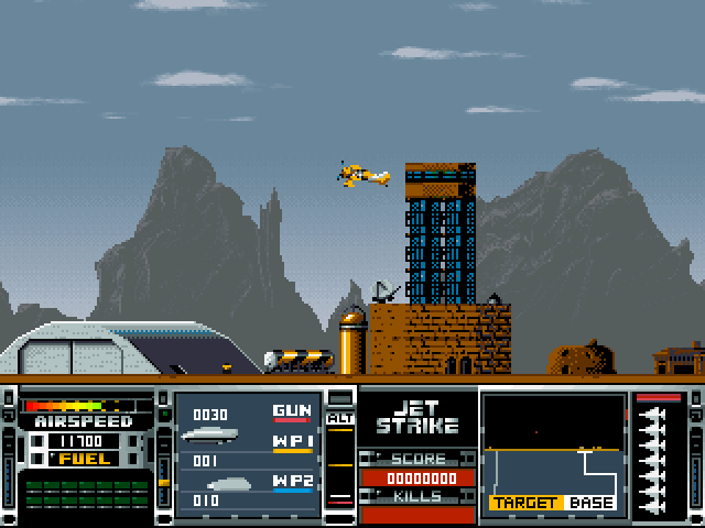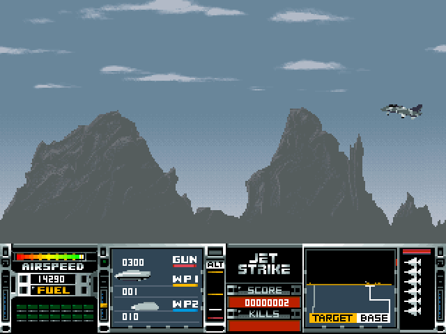 Jetstrike is an arcade style side-scrolling shooter in which you control various aircraft to fly missions against enemy targets. It is rather similar to Triplane Turmoil but with a modern setting, and allows to player to choose from a vast range of different combat airplanes and helicopters. There are combat missions with a story that doesn't take itself very seriously, practice and training missions, and the Aerolympics mode where you compete against other players doing various piloting stunts.