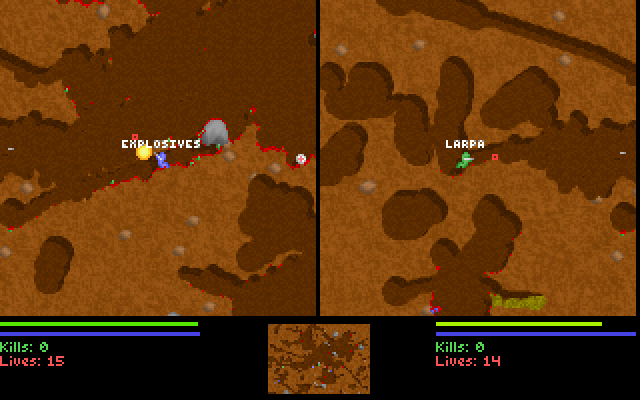 Imagine Quake and Worms combined! Liero might appear tame on the outside, but with such weapons as the Gauss Gun and Napalm, you will have blown half the landscape away within the first minute, let alone the opposition worm. Liero is a 2-d action feast, with vivid sound effects and hectic battles. It is best played against a friend, though, since the computer opponent spends half his time blowing away himself rather than you.