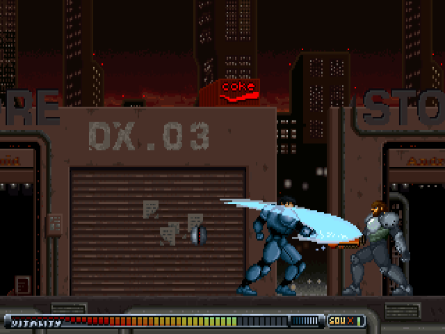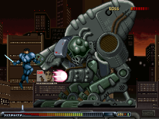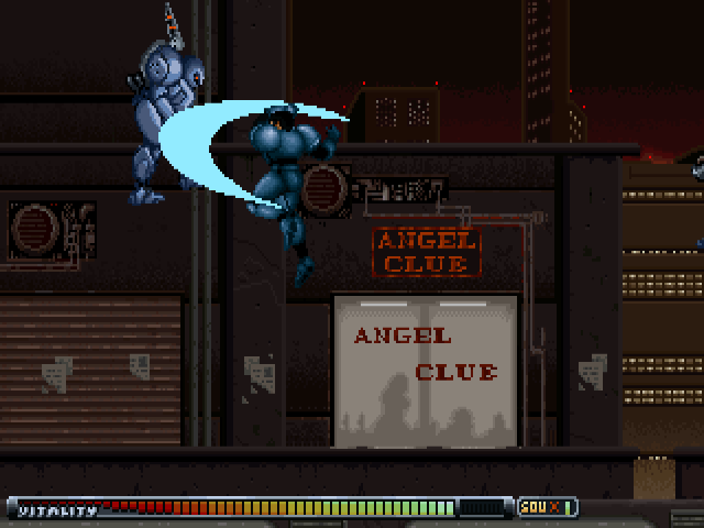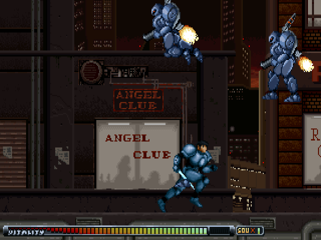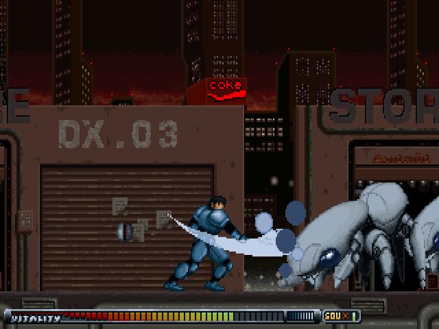 The age 2020 Cyborgs and Bioroids, which could be manufactured by the progress of mechanism, have been produced throughout the world. In comparison to the progress of science the system of human society improved not so much. The basic and chronic problems in human society have eliminated not yet. In such atmosphere Cyborgs and Bioroids are being abused by many criminal organizations. But any governments or organizations made no solution for that. This game's hero 'Sou' is a cub of Zyclunt. Zyclunt is a mercenary party, which consists of retired soldiers or veterans. Many of them have discharged dishonorably because of extremity. Mainly they handle unofficial cases, special tasks or personal securities. Sou came to be a member of Zyclunt, after dropped from the military. Sou suppressed the Columbian narcotic king Casto in the extreme way in revenge for his closest friend Ricki who had been cruelly murdered by Casto. It caused innocent civilian's death too. At 24 June 2022, at 16 o'clock. Finally the first mission is delivered to Sou. A flock of machadine appeared in D-C-14 district, where the regular general meeting of local security is taking place. Sou is heading to D-C-14 by his private plane excited in first mission. But he feels some ominous foreboding......