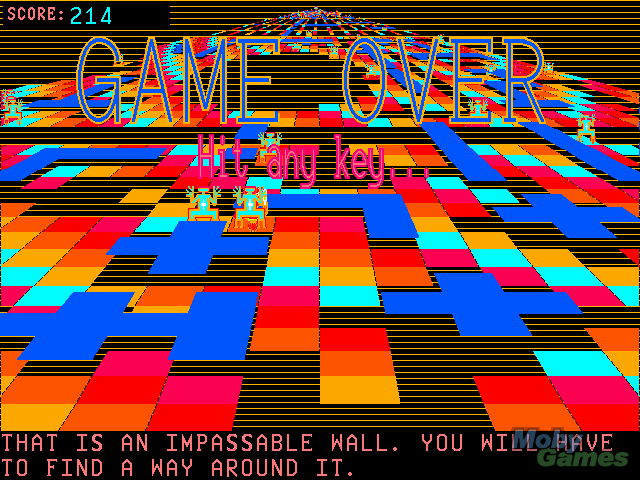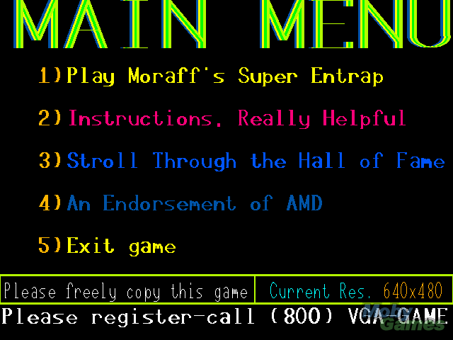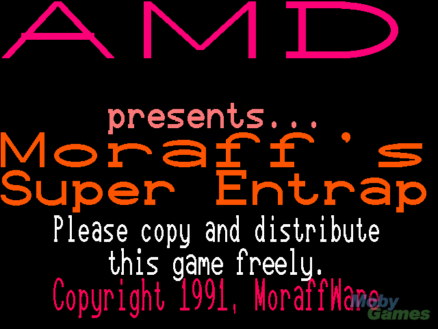 Moraff's Entrap is a strategy game. Your aim is to get to the far end of a large grid, filled with enemies, holes and walls. You have the ability to create and fill in holes, to stop the enemies reaching you or to reach new areas. The enemies vary in intelligence - some will just move towards you, while others will move around walls to reach you. The further forward you move, the more points you gain.